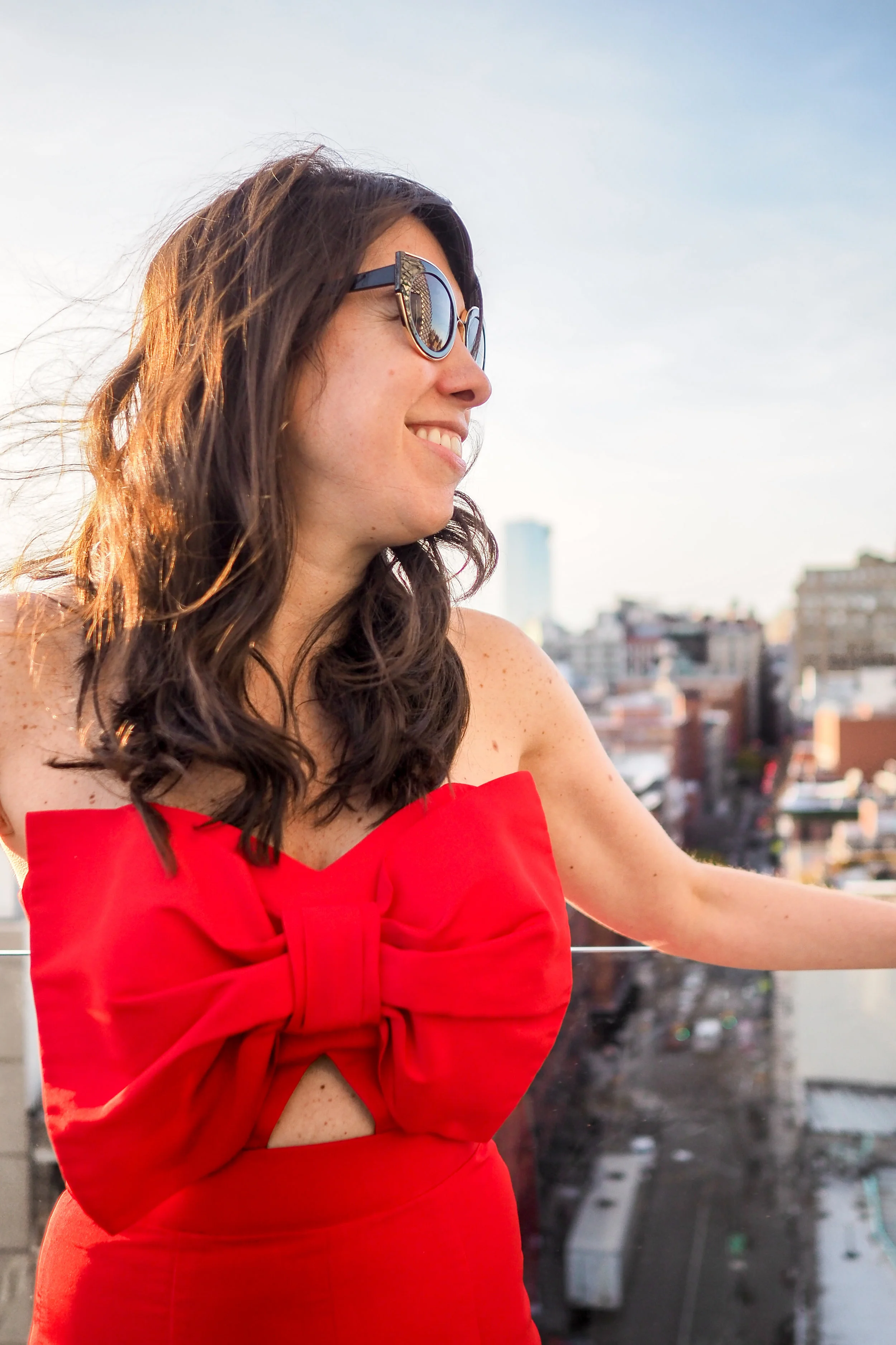If you would like to wear an eye catching holiday outfit, this is your jumpsuit. I cannot get enough of the oversized bow! It's also fun to vary from the standard festive dress by wearing a jumpsuit instead. Paired with nude pumps, it allows the jumpsuit to stand out on its own.
